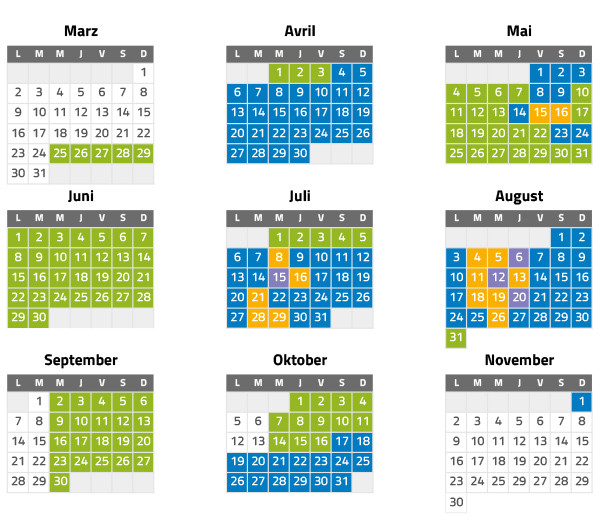 Öffnungszeiten des Parks von 10 bis 18 Uhr von 10 bis 18 Uhr : von 04/04/2026 bis 03/05/2026 am 8., 9., 14., 23. und 24. Mai 2026 von 17/10/2026 bis 01/11/2026 von 10 bis 19 Uhr : von 06/07/2026 bis 30/08/2026 Von 10 bis 22 Uhr (Sonderprogramm und Attraktionen bis zum Abend geöffnet) Abendveranstaltung "Les Astronomiales" ab 19:30 Uhr Der Park ist geschlossen: von 02/11/2025 bis 24/03/2026 am 30. und 31. März 2026 montags und dienstags vom 01/09/2026 bis zum 13/10/2026 ab dem 02/11/2026 Information: Die Parkplätze und Kassen schließen 2 Stunden vor der Schließzeit des Parks.